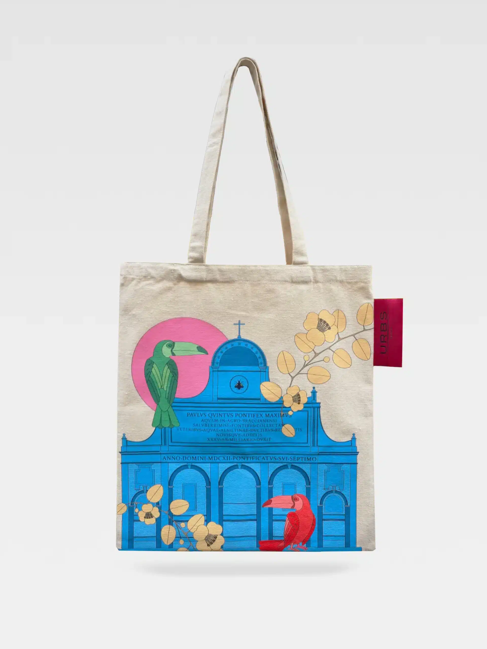 La Tote Bag Fontanone reimmagina il celebre Fontanone del Gianicolo con colori pop e dettagli vivaci. Tucani e natura tropicale si intrecciano all’architettura storica romana, creando un accessorio iconico e sorprendente. Capiente, resistente e dotata di tasca interna.