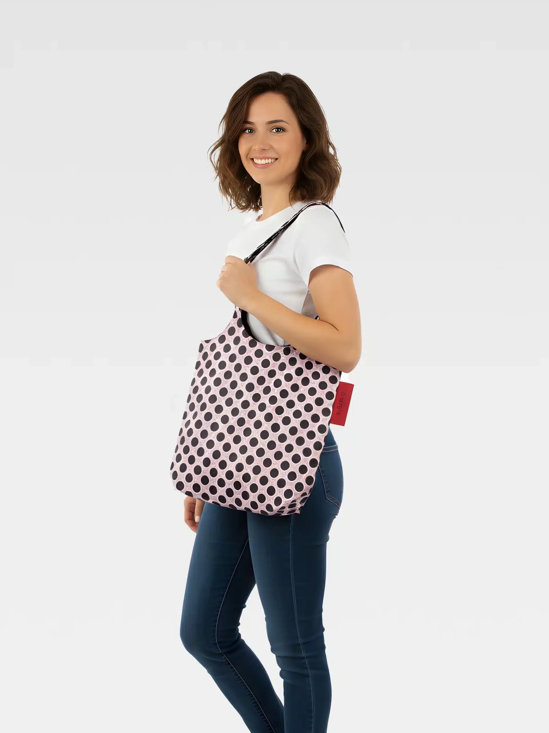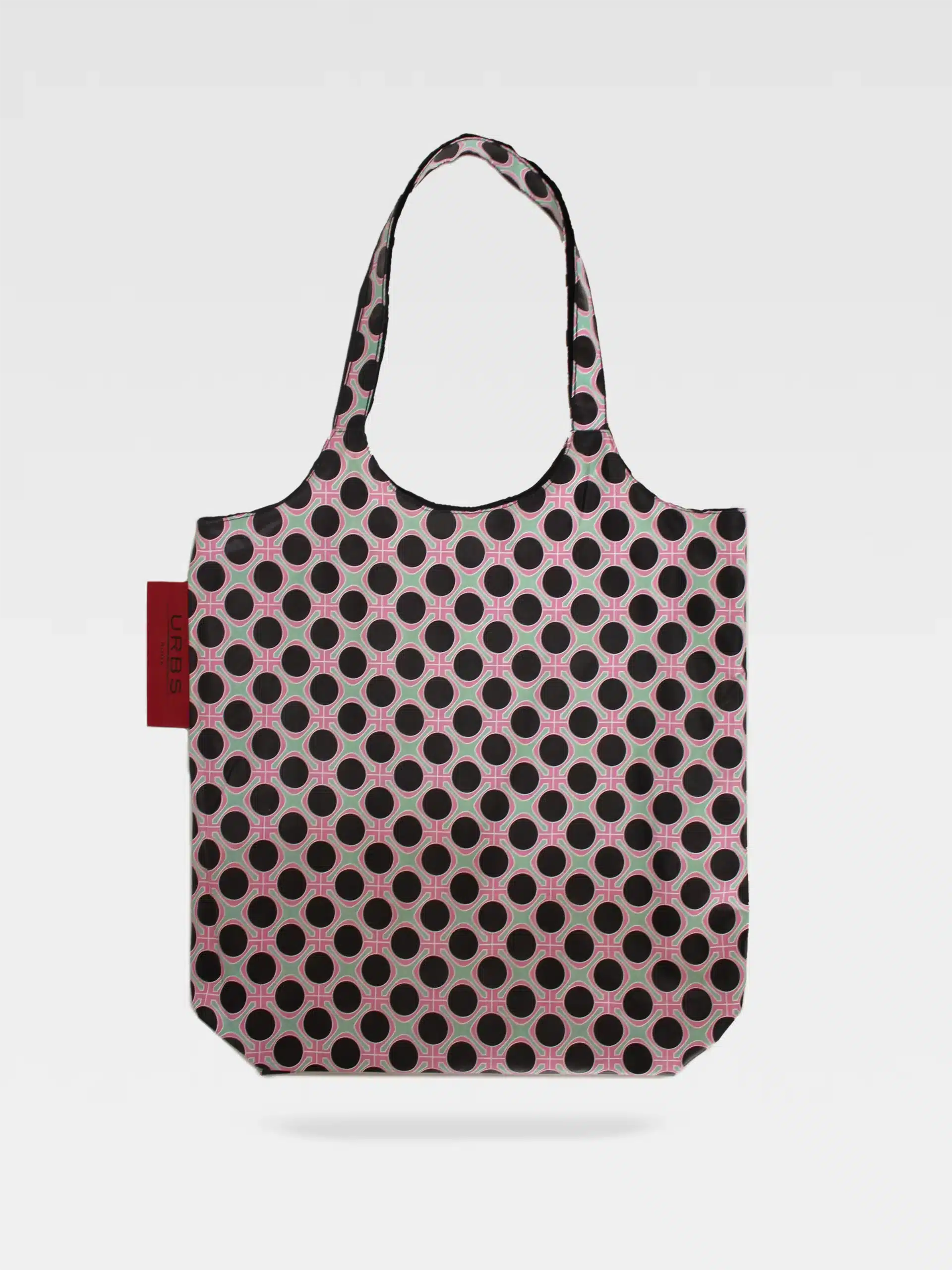 Una tote bag impermeabile dal carattere deciso, ispirata al celebre pavimento di San Paolo fuori le mura. Il pattern nero e rosa dona un look grafico e contemporaneo, mentre la struttura double face con interno nero la rende versatile e perfetta per ogni giorno.