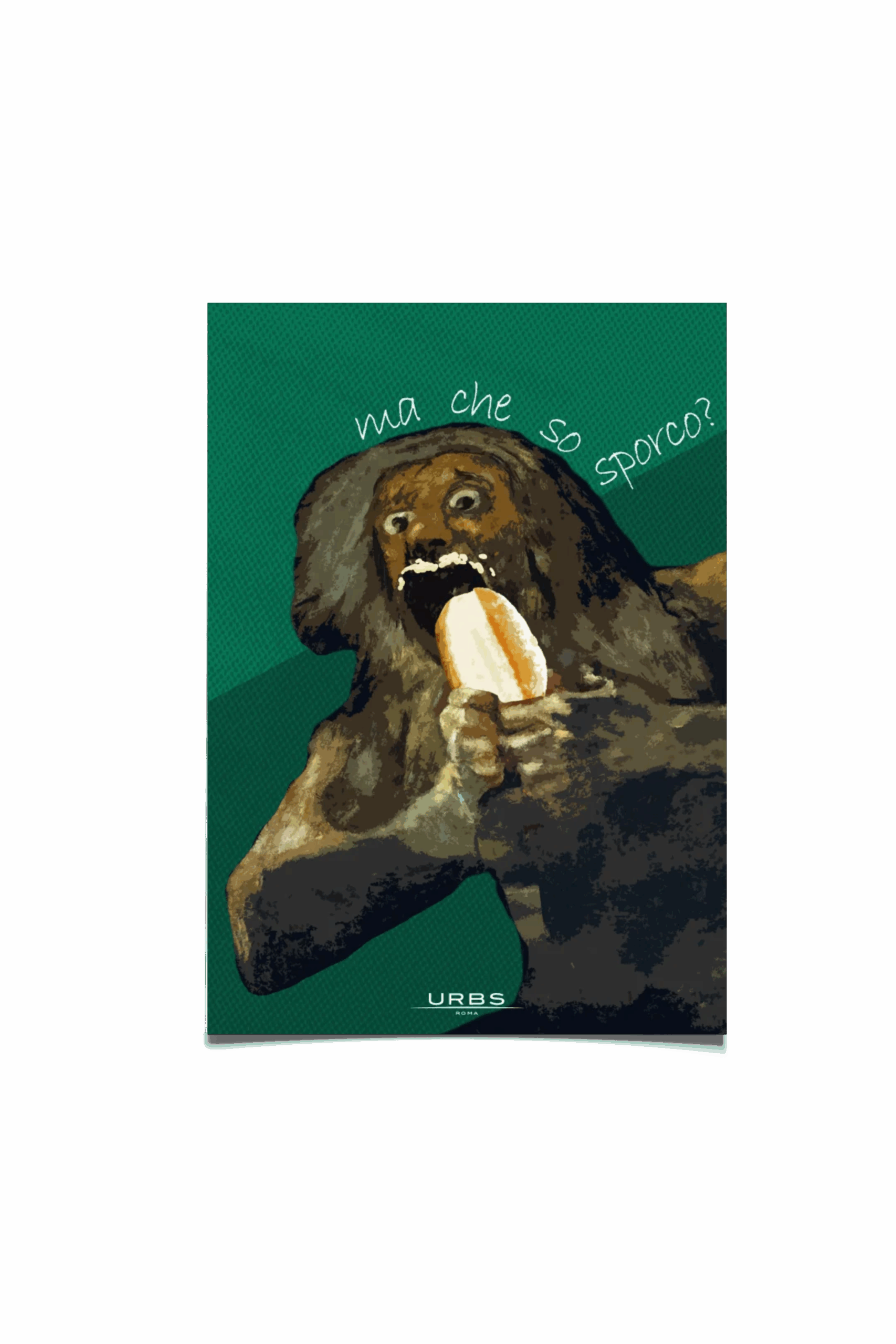 Cibo e Roma vanno d’amore e d’accordo: la cultura culinaria è storia e tradizione, raccontata in modo divertente e creativo con frasi e monumenti tipici della città.