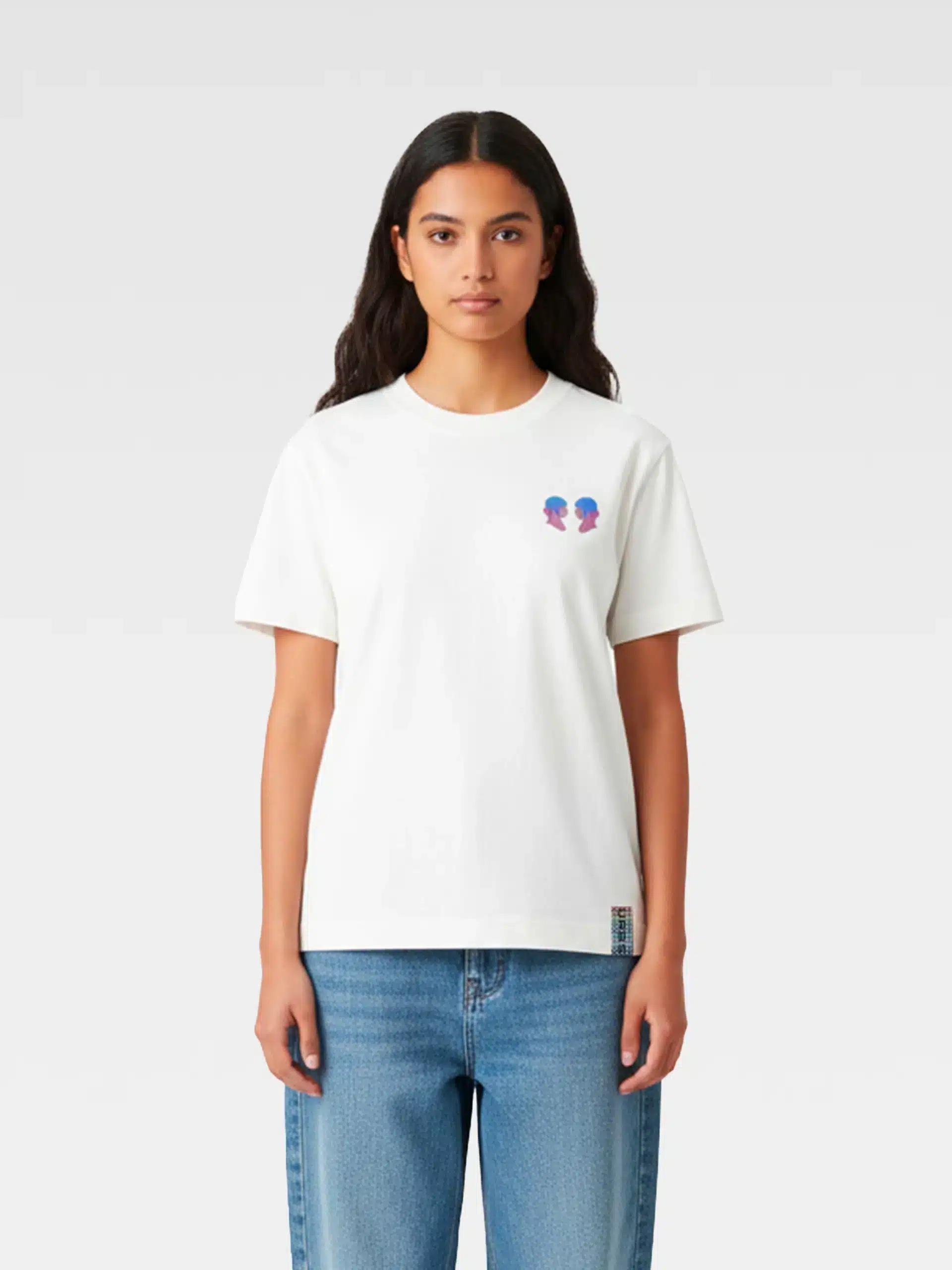 La T-Shirt Donna Donna celebra la forza, la grinta e la complicità femminile: due gladiatrici stilizzate che diventano simbolo di potere e identità. In cotone biologico, con tag arcobaleno URBS: un capo che parla di energia e libertà.
